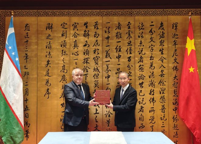 12月19日,中国国际文化传播中心执行主席龙宇翔在北京会见乌兹别克斯坦共和国总理办公厅对华合作司司长依赫提亚尔·尼亚孜穆拉多夫率领的乌兹别克斯坦政府代表团一行,双方就落实在文化艺术、经贸投资等领域的务实合作进行深入交谈。