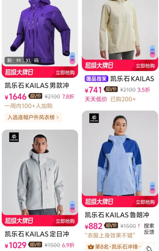 老实说,知道现在折扣火了,但刚开始还是很怕便宜没品质。可抱着试试看的心态,打开唯品会搜索了凯乐石冲锋衣。结果价格却让人瞬间不再纠结——一些原价三千左右的高防风、透气款居然折后只要七八百出头!
