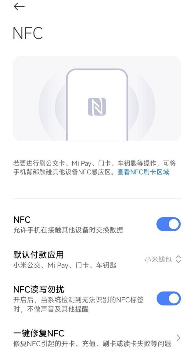 1. 打开手机设置,找到“连接与共享”,点进去后开启NFC功能,并设置默认钱包为小米钱包。