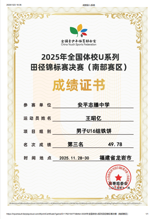 未来,学校将继续深化体教融合实践,完善长效机制,让更多学子在追逐速度、力量与高度的同时,收获受用一生的品格与智慧。再次祝贺王昭乾、王昭亿同学!愿所有志臻学子,都能在属于自己的“赛道”上,全力以赴,掷出理想,奔向锦绣前程!