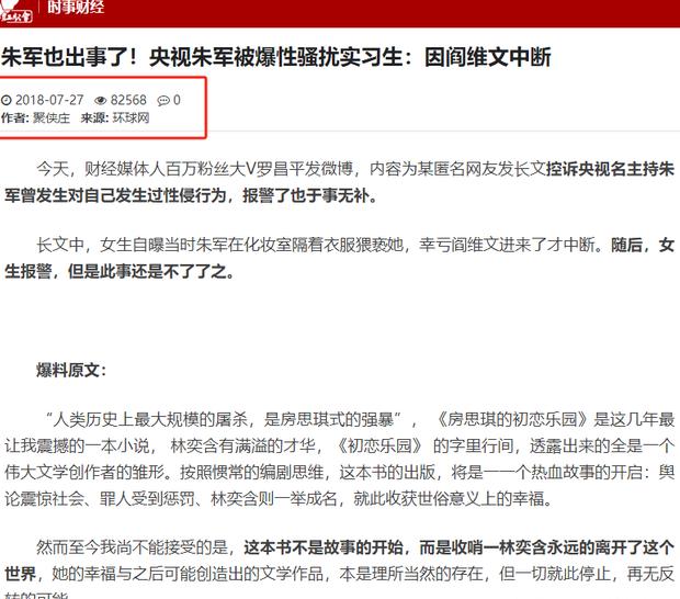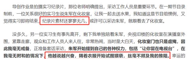 2018年,一位名叫弦子的实习生在网络上发文,控诉朱军对其进行性骚扰。