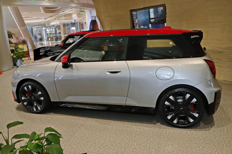先瞅瞅这身“战斗服”。电动MINI JCW深谙“少即是多”的道理,它没有张牙舞爪的空力套件,而是用黑化车标、红色点缀、18英寸方格旗轮毂和那抹低调的JCW徽章,告诉你什么叫“闷骚的暴力”。这是一种经典、克制的性能美学,像一位穿着定制西装的绅士,脱了外套全是腱子肉。