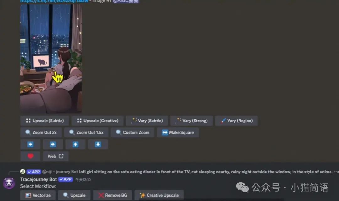 首先我们截取比较中意的爆款作品图片,然后打开Mj,选择Niji模式上传截取的图片,然后输入describe反推提示词,复制任意一个提示词后,粘贴到输入框,最后添加上sref空格,刚刚上传的图片链接,这样我们就可以复刻参考图的风格。
