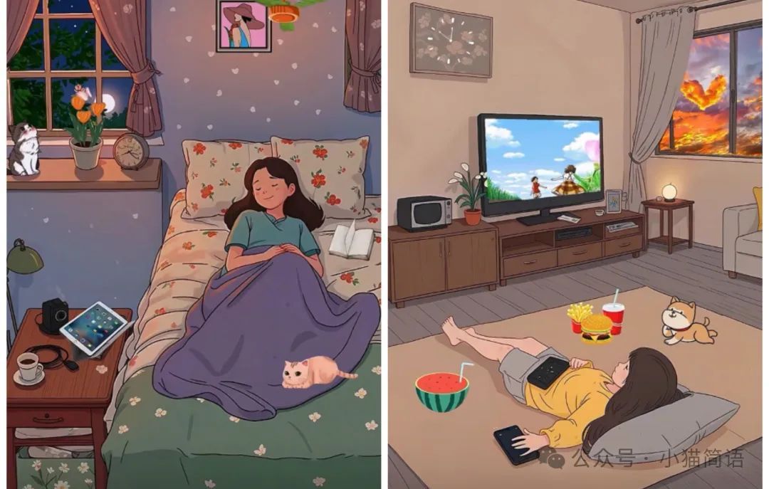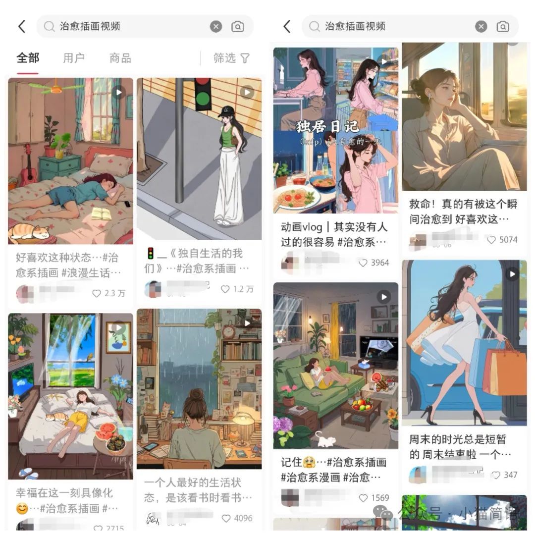 此类视频的主题是治愈系动态插画,每条视频大概十秒左右,都是通过映射生活来引起观众共鸣,而能不能引起观众共鸣,是作品能否爆火的决定因素。这一点需要大家多分析爆款,从观众的角度来审视自己的作品,画面就是治愈的生活场景,突出一个慵懒惬意。