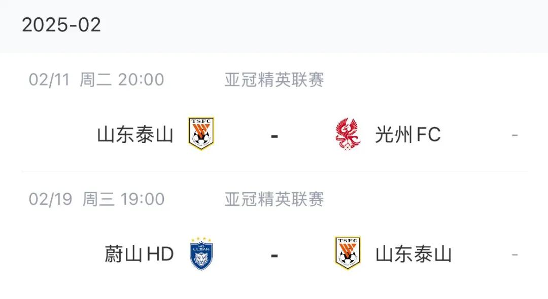 何况明年上半年还有两轮亚冠,泰山队还没到完全放弃的地步。2025年2月11日主场迎战光州FC,2月19日客场挑战蔚山现代。