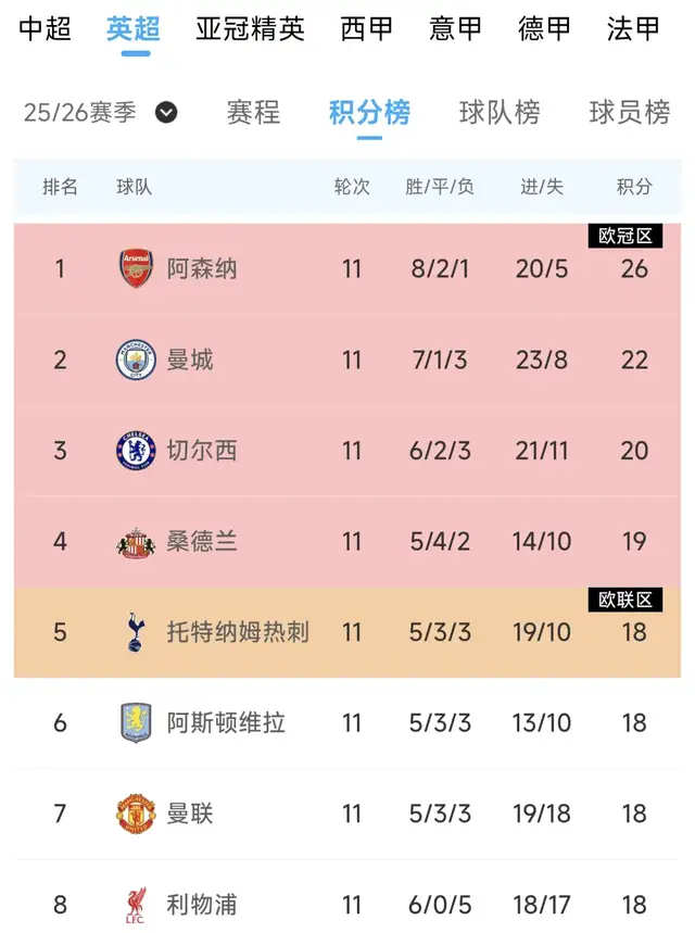 此战过后,曼城和阿森纳的积分差距缩小到了4分。目前积分榜最新情况是阿森纳26分领跑,曼城22分第2,切尔西20分第3,桑德兰19分第4。在此之后,有5支队伍都是18分,分别是热刺、维拉、曼联、利物浦和伯恩茅斯。