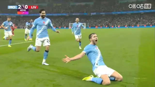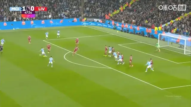 第47分钟,曼城扩大比分,尼科-冈萨雷斯中路拿球突施冷箭,皮球击中范迪克后变线入网,曼城2-0利物浦。