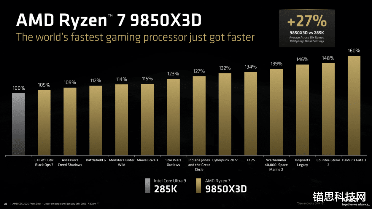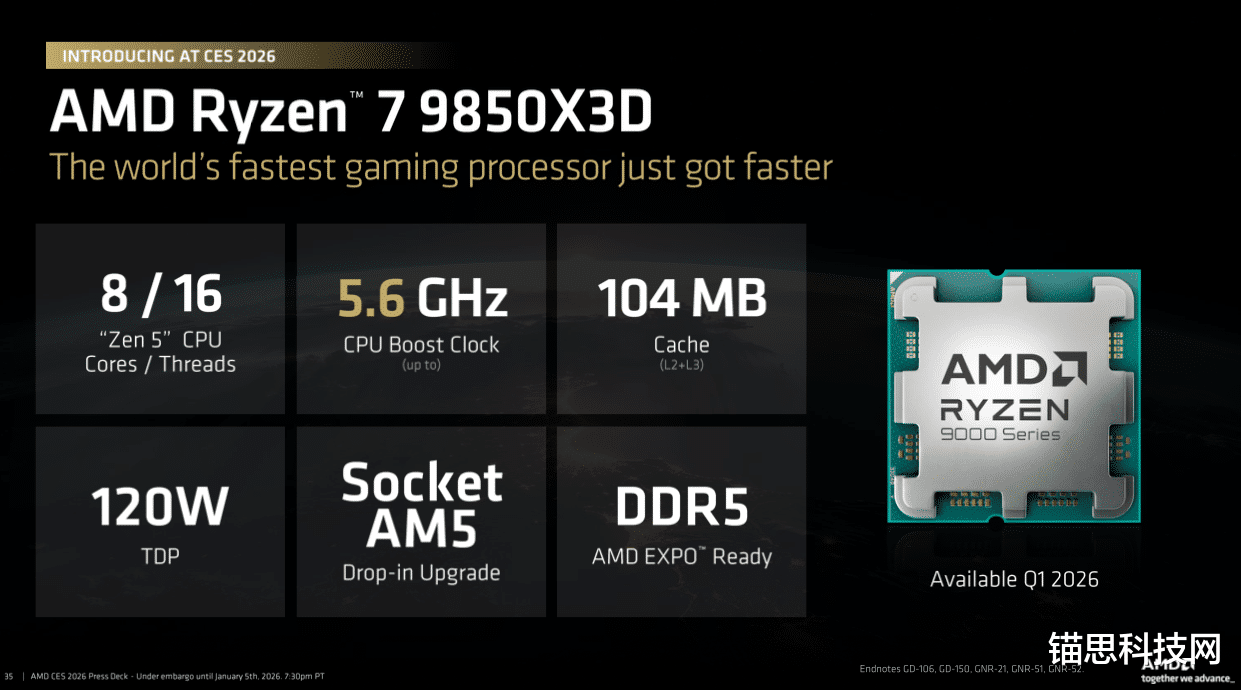 搭载AMD锐龙7 9850X3D 系列处理器的系统将于 2026 年第一季度起通过主要 OEM 厂商、系统集成商(SI)及零售合作伙伴发售。