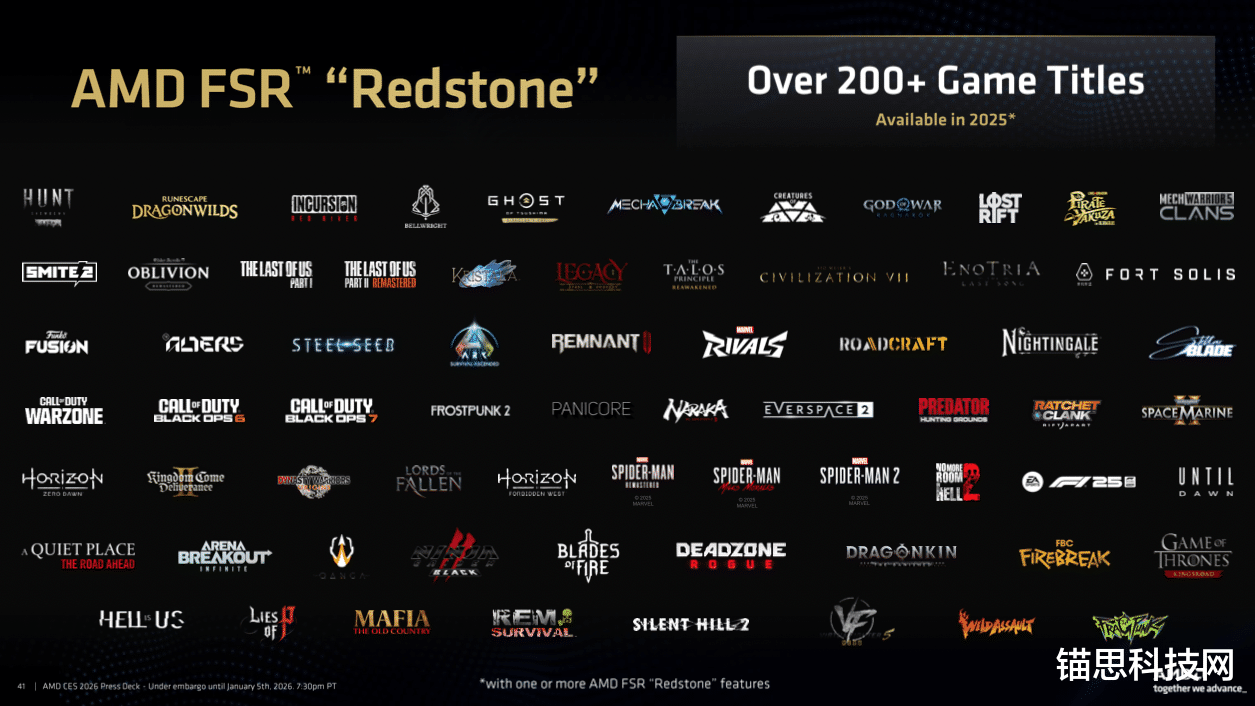 上个月,AMD 发布了备受期待的 AMD FSR “Redstone” 功能,包括 FSR 超分辨率(FSR Upscaling)与 FSR 帧生成(FSR Frame Generation),现已通过 AMD Software: Adrenalin Edition 25.12.1 驱动提供使用。