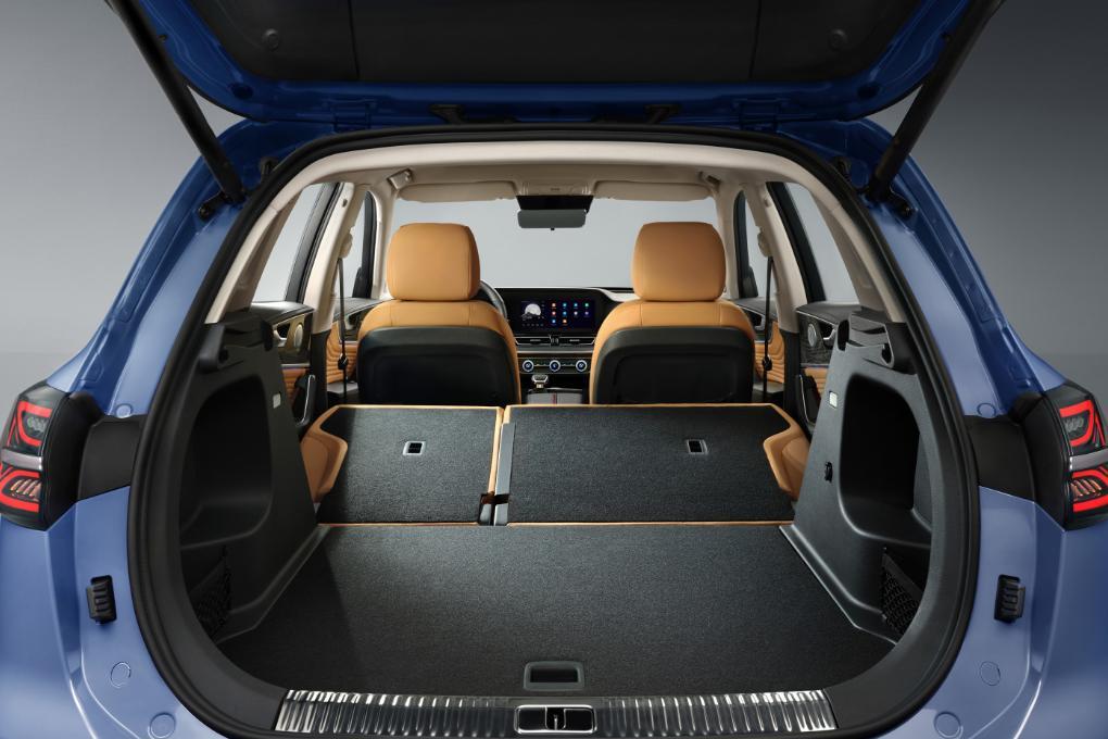 来到侧面,新红旗HS5的侧面线条并未有大的改变,依旧造型饱满,上挑的腰线勾勒出劲道的身姿。轮拱和底边饰条也变为与车身同色,豪华感更强。同时,前后侧翼子板微微突出车身,车身腰线从前翼子板处贯穿至车尾,配合车门下方内凹式的筋线设计,再搭配熏黑轮圈,让新车看上去动感十足。尾部车顶尾翼得以保留,采用时下流行的贯穿式尾灯,并有一条镀铬饰条贯穿,显得更精致,并且融入了箭羽的元素,给人一种蓄势待发的感觉。尾灯的外壳做了熏黑处理,凸显了车辆的运动感。新红旗HS5的细节设计十分考究,无论是测翼子板上的装饰灯,还是门]把手上的菱形格、底大边的装饰条,都透着精致和用心,也显示着我们品牌品质的全方位提升。新车定位不变,车身长度为4785mm,轴距达到了2870mm,越级尺寸,超大空间,属于中型SUV的标准身材。