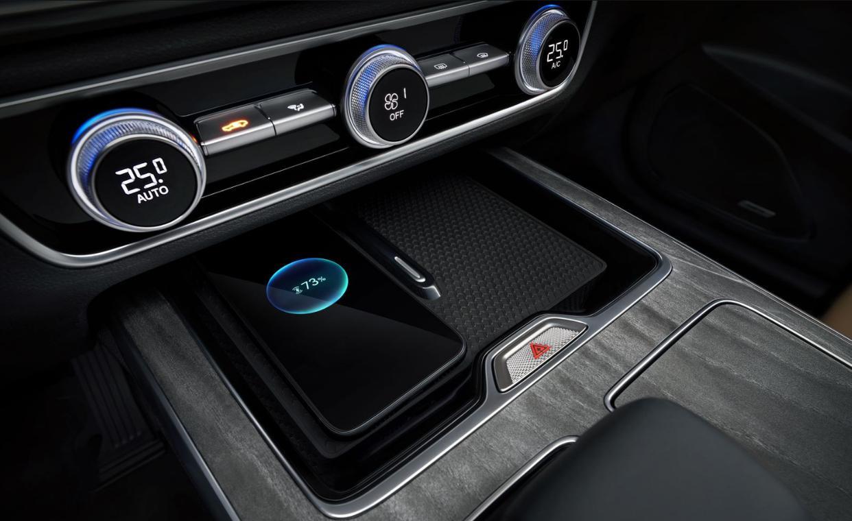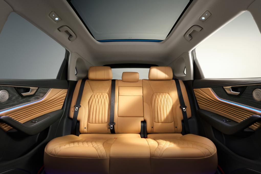 内饰设计,红旗HS5的一大卖点便是宽敞的车内空间和豪华舒适的内饰,此次新红旗HS5继承了这个卖点并加以强化。方向盘造型与现款无异,只是在6点钟方向的辐条造型上更加精致。依然配备了换挡拨片、加热以及电动4向调节,依旧是20万元级SUV“最奢”方向盘。此外,新红旗HS5拥有近30项减振降噪技术加持,NVH达到同级领先水平,更有专门根据车舱独有声学指纹量身定制的搭载专属定制BOSE2环绕音响、NAPPA+ Alcantara舒享座椅、HUD抬头显示、双12.3液晶屏,40W手机无线充电等众多豪华配置。后排头部空间983mm,腿部空间950mm,舱内空间全面领先同级。座椅采用Alcantara+Nappa真皮配合高密度打孔技术,温柔舒适,坐垫长度达530mm,提供完美腿部支撑。