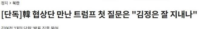特朗普与韩国代表团见面,开口说的第一句话,就让对方当场方寸大乱。韩国媒体《朝鲜日报》不久前援引一名外交消息人士的话称,在美韩达成关税协议前,特朗普曾短暂接待韩国代表团。而会面开始后,特朗普开口第一句话就让所有人当场傻眼:“金正恩最近还好吗?”