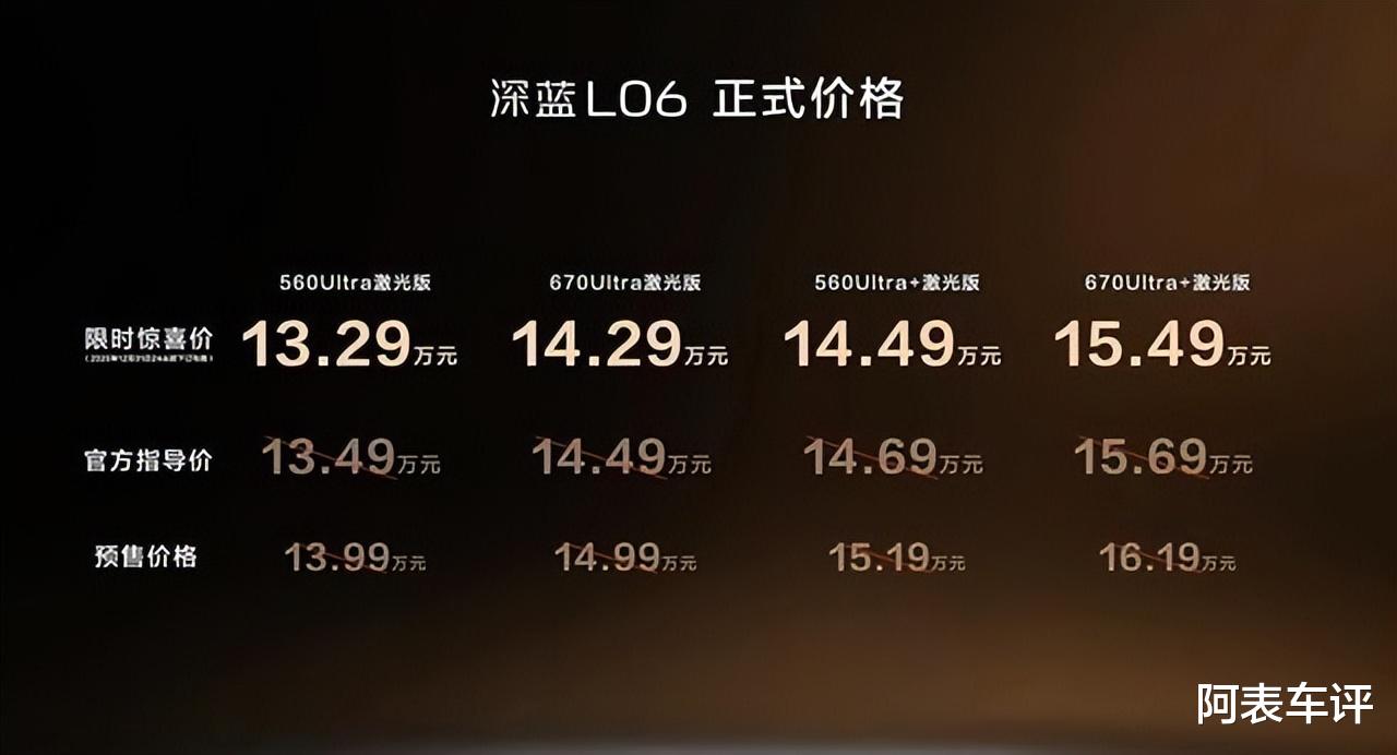 深蓝汽车近日宣布全新中型纯电轿车L06正式上市,新车推出两种续航版本,官方指导价为13.49万元起,限时惊喜价为13.29万元起。作为深蓝品牌的全新力作,L06定位中型纯电轿跑,全系标配激光雷达,并可选装磁流变主动悬架系统,展现出在15万级纯电轿车市场的强劲竞争力。