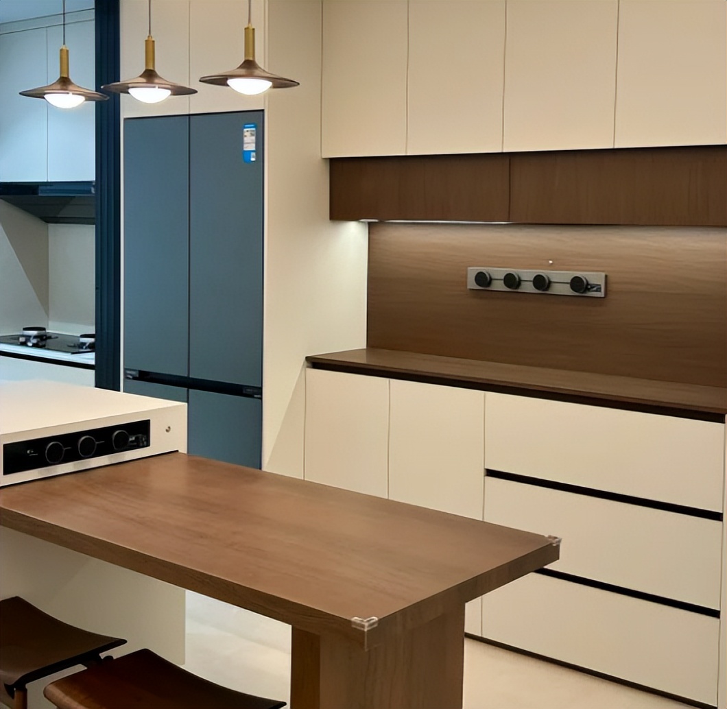 橱柜上面做双层吊柜,橱柜多做抽屉;