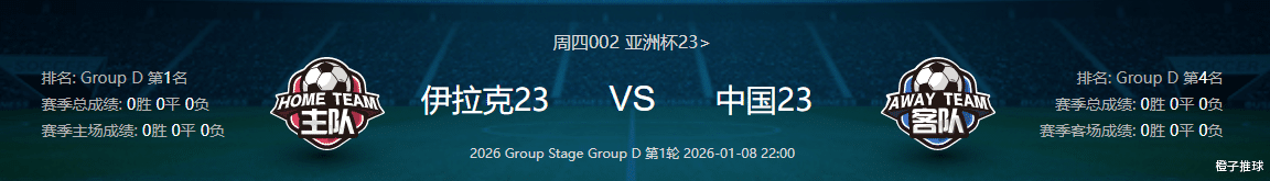 看法:本届U23亚洲杯对中国足球意义重大,过去五届赛事中,中国U23队累计仅取得2胜13负的战绩,从未晋级过淘汰赛阶段。这一次分组形势被认为是中国队的 历史最佳签位 ,避开了日本、韩国、沙特等传统强队。从赛程来看如果能够拿下伊拉克,次战力保澳大利亚不胜,末轮击败泰国,晋级八强创造历史的机会将大大增加。一旦失利,球队可能再度陷入“生死战”“荣誉战”的恶性循环。不过在这种情况下,数据方面还是没有给于中国支持力,有一定的看衰意思,个人认为此役重点还是关注双方激战成和较为稳妥。