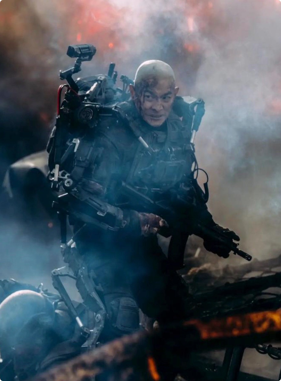 而比蛋糕更让人疯狂的,是他在《流浪地球3》预告里曝光的全新造型,寸头剃得干干净净,脸上挂着斑驳的血迹,眼神里没有了第二部的偏执与疯狂,取而代之的是一种置之死地而后生的决绝。
