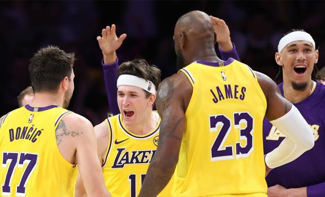 这一球点燃了湖人主场所有球迷的激情,现场响起山呼海啸般的喝彩声。掘金队最后一攻由小哈达威出手不中。湖人将士们纷纷跑到东契奇身边,围着他庆祝这场来之不易的胜利。