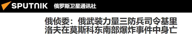 俄罗斯卫星通信社2024-12-17《俄侦委:俄武装力量三防兵司令基里洛夫在莫斯科东南部爆炸事件中身亡》