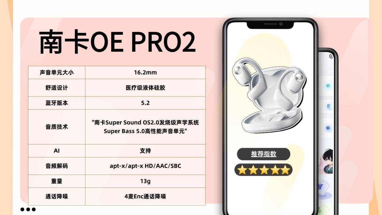 南卡在开放式耳机领域的口碑与影响力已稳居行业顶尖,OE Pro2无论音质体验上还是ai体验上,都被公认为当前开放式耳机的Top1代表。它通过“软硬件协同”的独特设计理念,将智慧Ai与音质兼得,并依托南卡13年的声学技术沉淀,彻底突破了开放式耳机普遍存在的音质单薄、漏音严重等行业痛点。