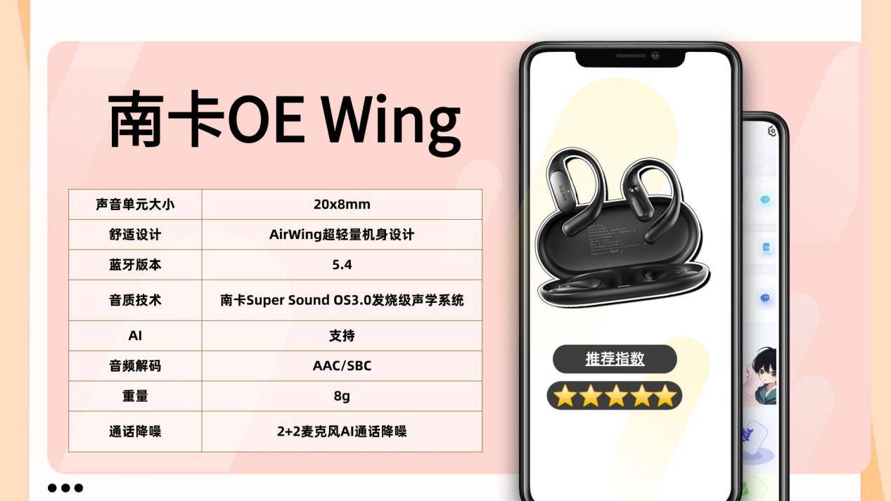 作为拥有15年音频研发技术的品牌,南卡在数码领域内拥有极高的人气和口碑,而Wing无论音质体验上还是AI体验上,都被公认为当前开放式耳机的Top1代表。它通过“软硬件协同”的独特设计理念,将智慧AI与声学系统深度融合,并依托南卡多年的声学技术沉淀,彻底突破了开放式耳机普遍存在的音质单薄、漏音严重等行业痛点。凭借 “全能智慧助手+音质巅峰”的双重优势,Wing成为开放式耳机圈内的公认旗舰标杆!