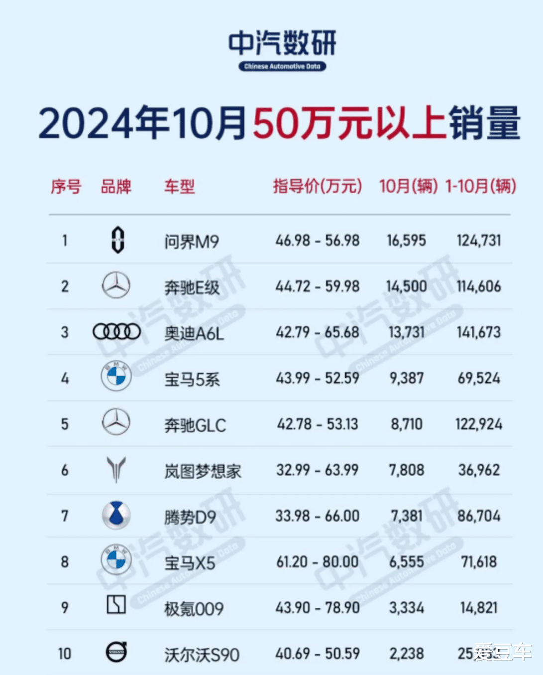要知道,目前国产品牌已经霸占了50万级别的车型销量冠军,已经是突破了以前的天花板。而这款车型就是华为鸿蒙智行问界M9。新车已经超7个月蝉联国内50万元以上销量冠军。要知道这个级别以前最畅销的车型都是奔驰E级、宝马5系、奥迪A6L、奔驰GLC以及宝马X5等传统豪华品牌所垄断,而且优势巨大。如今已经被华为鸿蒙智行颠覆,并且稳定领先优势。
