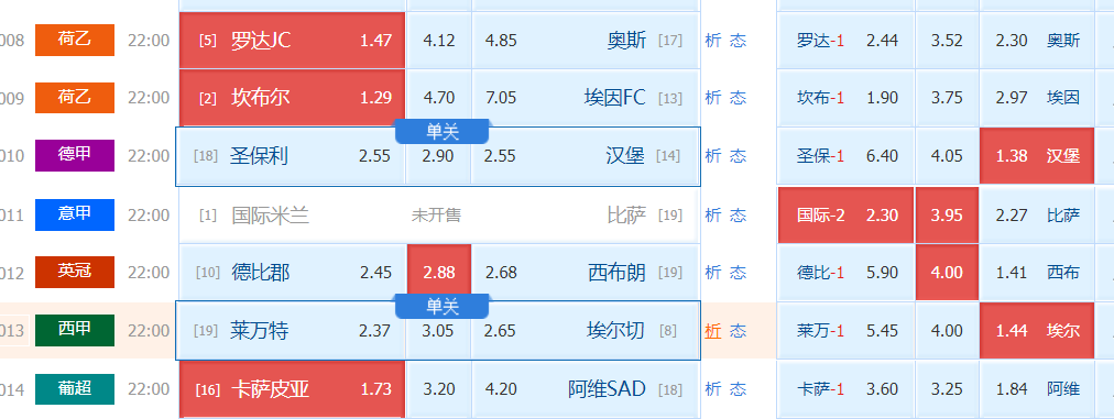 奥斯目前在积分榜上排名第17,积23分,处于联赛下游位置,基本没有升级希望,当下主要以保级为目标。近10场比赛,奥斯同样取得2胜3平5负的战绩,打进12球,失球15个,防守端表现略好于罗达JC,但进攻火力相对较弱。客场作战时,近3场比赛取得1胜2平的成绩,保持不败,客场表现有所提升。最近一场比赛,奥斯在主场4 - 0大胜埃门,士气得到一定提升,但此前主场遭遇连败,整体稳定性不足。阵容方面,奥斯有一名球员托马斯·科克斯因腿部骨折无法参赛,对球队影响有限。主力门将哈特科特、中场库伊佩斯、后卫马里亚尼等均可出战,锋线由斯拉格费尔、雷姆斯、杜库雷等人组成,阵容相对完整。在与罗达JC的历史交锋中,奥斯处于下风,最近一次交手时主场1 - 2负于罗达JC,心理层面略处劣势。