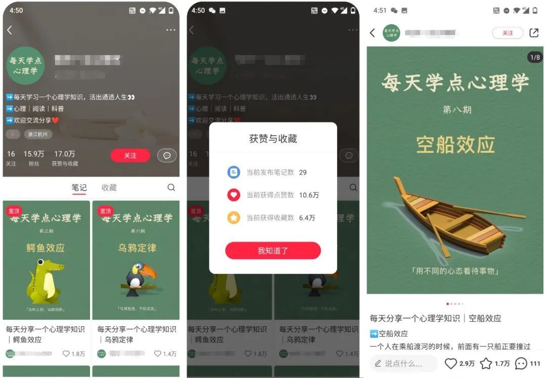 话说回来,有搜索就有需求不是?没事闲着搜了玩玩的概率是很小的,不过,确实让我没想到的是,心理学图文类账号在小红书那么火,这个真的是震惊到我了!