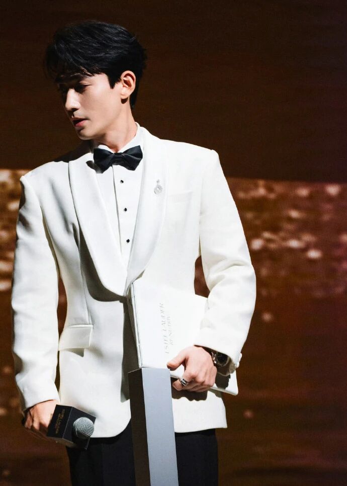现在太多 “绅士造型” 是 “穿贵价西装硬凹派头”,但朱一龙这波告诉你:好的绅士矜贵,是 “你的骨相撑着西装的奢,你的深情裹着造型的柔”。白色西装没让他变成 “刻板的贵公子”,钻饰没让他变成 “炫富的壳”—— 是他的骨相让白缎有了俊逸的形,是他的温柔让矜贵落了地,“深情与温柔交织” 从不是 “摆拍的表情”,是 “骨相、西装、妆面一起呼吸的共振”。