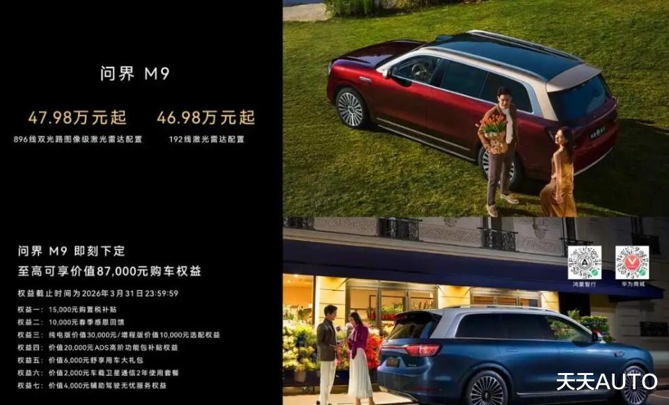值得一提的是,海量真实的出行数据也印证其安全实力。华为乾崑2月安全报告显示,华为乾崑智驾累计辅助驾驶里程达87.6亿公里,月活用户占比95.4%,单月主动避免碰撞32.7万次。此次激光雷达的推出,既是华为乾崑长期技术积累的集中体现,也为尊界S800与问界M9的首发落地提供了坚实技术基础,目前这一激光雷达已经开始铺货,比如说全新一代的AITO M9已经公布价格,搭载896线的激光雷达版本,指导价47.98万。
