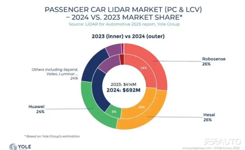 华为激光雷达目前的出货量最大,以192线居多,24、25年,全球市场的激光雷达出货量,前五分别为:速腾聚创占比为26%、禾赛科技占比为22.8%、华为占比为21.1%、图达通占比为13%、Luminar Iris占比不足5%。前三家企业的出货量差距不大,而且几乎以“撕裂”的市场格局,全面领跑市场,导致这一现象发生的核心根本,源于中国市场快速崛起的电动汽车科技。速腾聚创、禾赛科技为专注激光雷达的企业,但华为的激光雷达,只是其技术版图中的一个布局。