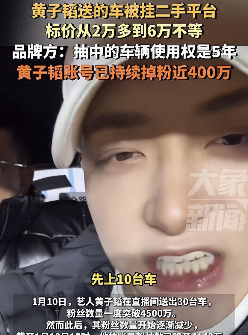 再看中奖者,车还没捂热乎呢,就挂上了二手平台,标价从28000到58000不等。这下子,黄子韬的良苦用心变成了二手市场的狂欢。有人说,这就是一场“交易”,用几百万粉丝换来一场短暂的热度。可问题是,这热度来的快,去得也快,留下的只有一地鸡毛。