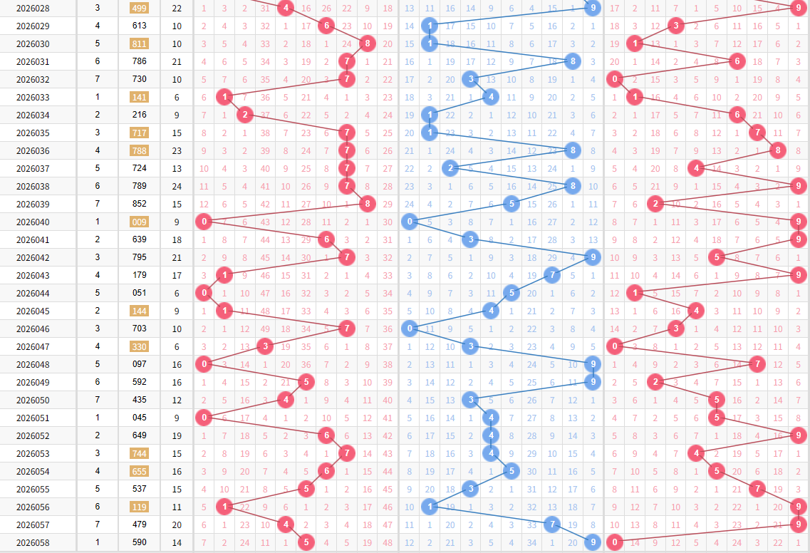 百位上期开出热号5,本期延续热号+温号组合,纳入0、3、4、7、9补全冷热平衡,覆盖0路、1路、2路全路数,适配走势轮换规律;十位近期中位号码活跃度提升,筛选2、3、5、6、7、8兼顾偶数回补与奇数延续,规避极端偏态,贴合近期十位出号节奏;个位上期开出0路冷号0,本期搭配1、3、4、6、8、9,兼顾热号延续与冷号回补,覆盖主流出号区间,提升适配性。
