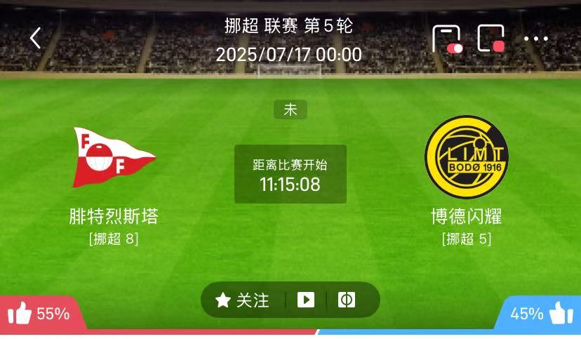 博德闪耀大概率控场进攻,腓特烈伺机反击。若博德闪耀早破门,可能大比分(如1-3、0-2);若僵持至下半场,腓特烈或借主场逼平(1-1爆冷可能:博德闪耀3天前刚踢欧联杯,体能若崩盘+腓特烈抢开局成功,主胜可期(概率约10%)