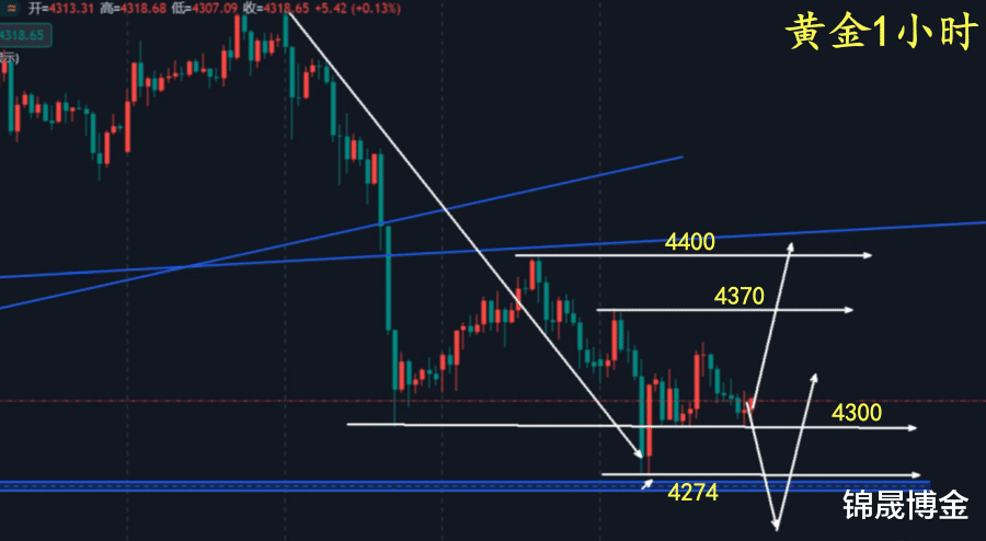 所以,无论从哪个角度上来说,明天周五都是反弹的概率更大一些,支撑在4300关口,压力4370—4400一线,即使跌破了4274这个低点位置,大概率也会拉起来的。
