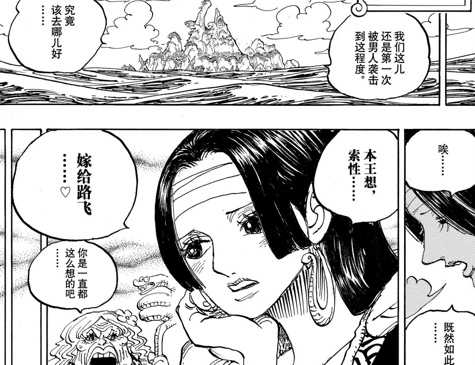 汉库克来巨人岛,布鲁克被暴踢镜头转向女儿岛,汉库克的国家被海军和黑胡子海贼团袭击过,这也让他们发现处于无风带的女儿岛也并不安全,汉库克成为重点关注对象,必须获得强大的保护才能让这个国家安全,因此联想到成为四皇之一的路飞。
