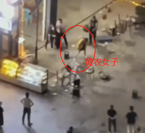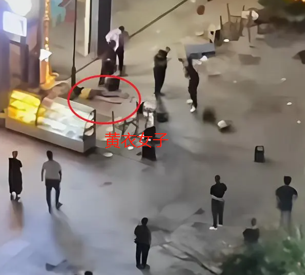 朝着当时站在门口的黄衣女子头部砸去,女子的头部被击中后,便倒在地上一动不动了。