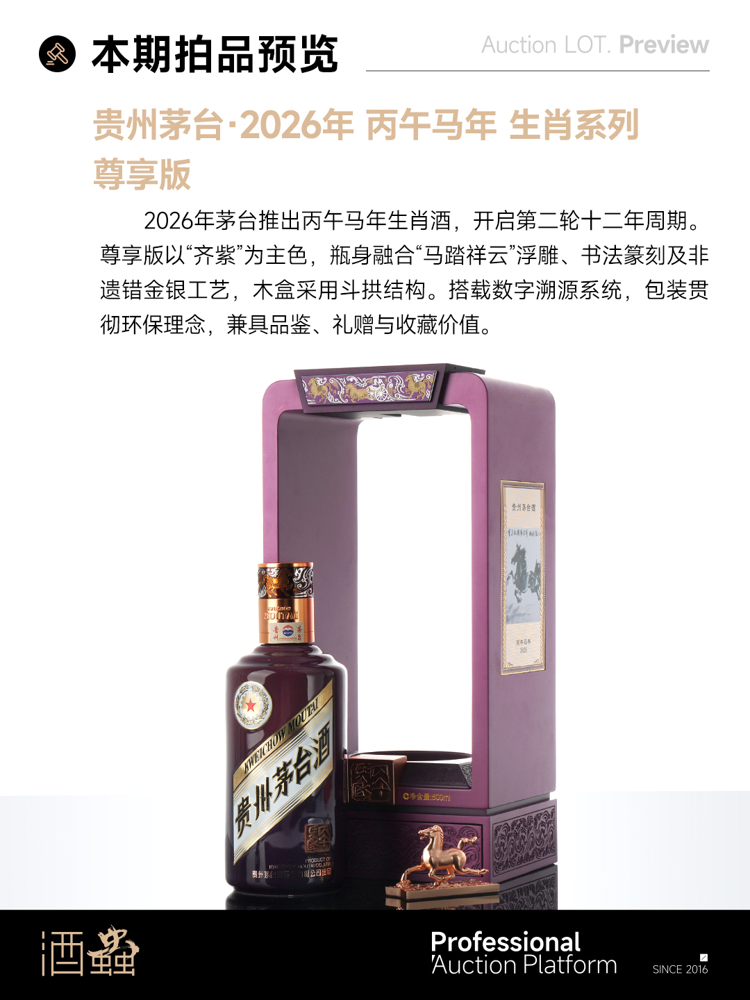 小年的灯火,映照千年不变的团圆向往;壶中的玉液,沉淀独一无二的时间之味。这场拍卖,是风土的对话,是岁月的典藏,更是一场关于“何以为年”的深情回望。