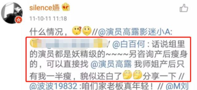 当时的白百何深受舆论的影响,不知道是有意为之还是无心之举,在社交平台发文内涵,表示网友要是想咨询瘦身的话可以找高露,说她生完孩子之后,不仅瘦了还白了。