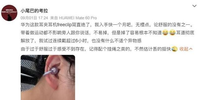 苹果耳机这种入耳式的设计,塞入耳朵中那么明显都会脱落,更别提华为FreeClip这种毫无佩戴感的耳机了。