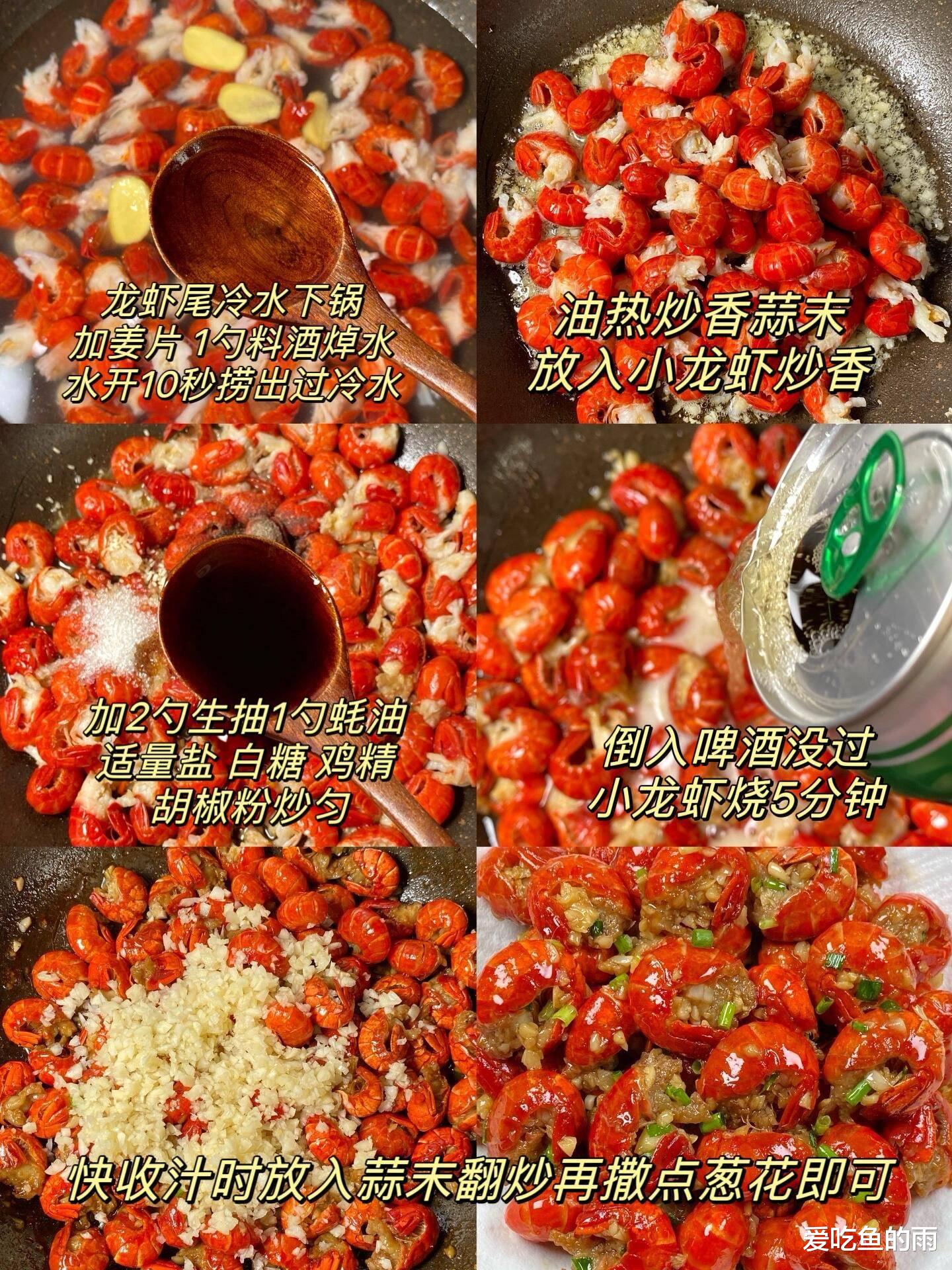 起锅烧油,油要比平时炒菜多一点,小火先把一半蒜蓉炸成金黄色,这叫“金蒜”,满屋子都是蒜香时,把另一半生蒜蓉倒进去关火,用余温激发出香味。这就是“金银蒜”的秘诀,生熟混合,香味才有层次,还不会发苦。接着把处理好的虾尾倒进去,开大火疯狂爆炒,直到虾壳变得红亮酥脆。这时候沿着锅边淋一圈料酒去腥,再倒入生抽、蚝油和一点点糖提鲜,最后倒入半罐啤酒!没错,就是啤酒,它是去腥增香的神器,还能让肉质更嫩。中小火焖煮五分钟,让虾肉吸饱蒜香和酒香,最后大火收汁,撒上一把葱花或者小米辣,那个色泽,看着就流口水!