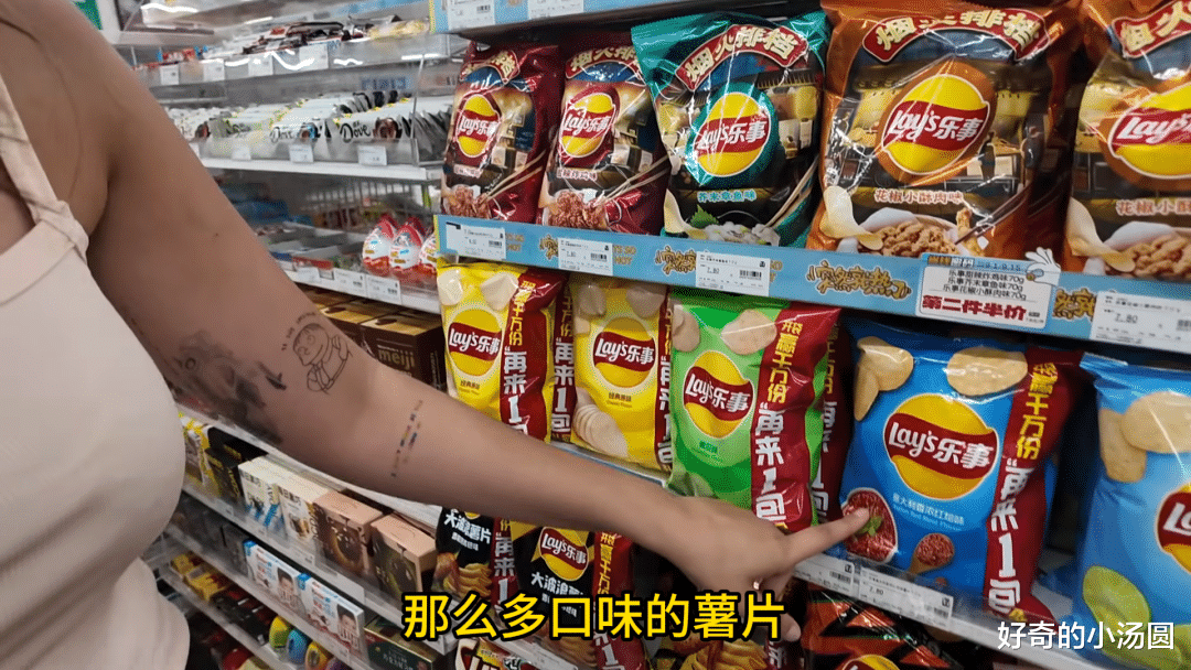 可能是因为刚到中国,姐妹两人也没有做好当地的美食攻略,她们兜兜转转,来到了一家连锁便利商店,看到店内的一些商品,两人就像是从山村里进城的小姑娘,充满了好奇。