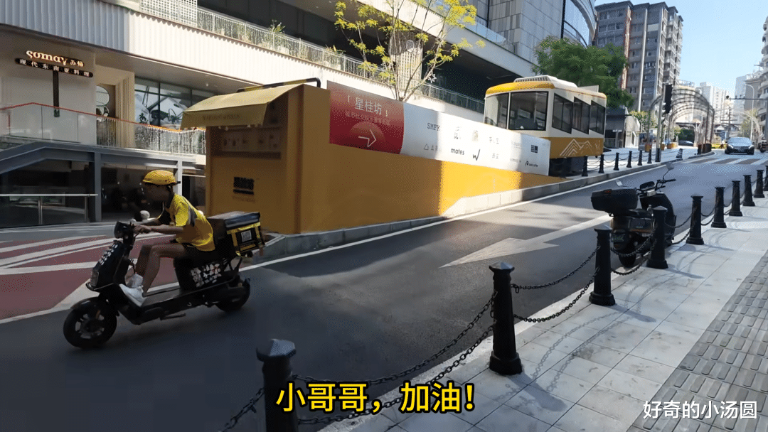走在大街上,身穿黄色衣服的小哥哥随处可见,他们都骑着电动车给人送餐,姐妹两表示他们实在是太酷了。