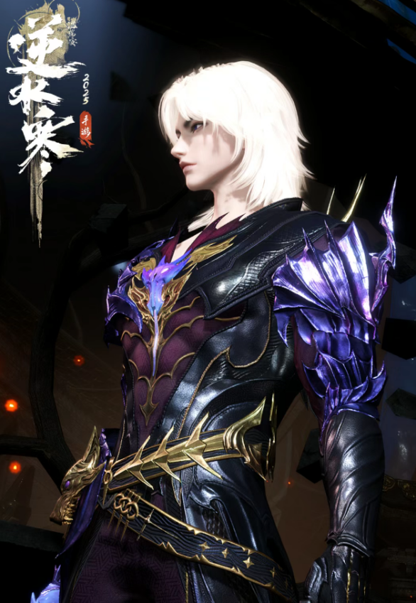 男款【冥渊】更是帅到腿软!紫色铠甲裹着紧身战衣,腰间刻着地狱三头犬,冷冽霸气中透着禁欲感。