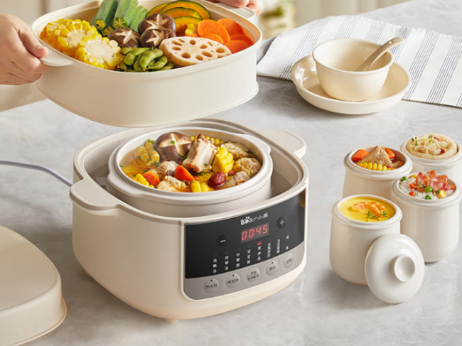 居家养生煲汤的贴心小厨电,一大三小四胆设计,可同时炖煮不同食材,互不串味,满足全家不同口味需求。采用隔水柔炖工艺,慢火精炖锁住食材营养,炖制粥品、汤羹、燕窝、银耳等口感细腻软糯,不易溢锅,智能预约与自动保温功能,睡前预约晨起即可享用,下班前预约回家就能喝到热汤,操作简单易懂,体积小巧不占厨房空间。送给妈妈、长辈或是养生爱好者,日常炖煮养生餐食省心省力,没有复杂功能,全是贴合日常饮食的实用设计,新年送暖心饮食关怀,温柔又实在,高频使用不闲置。