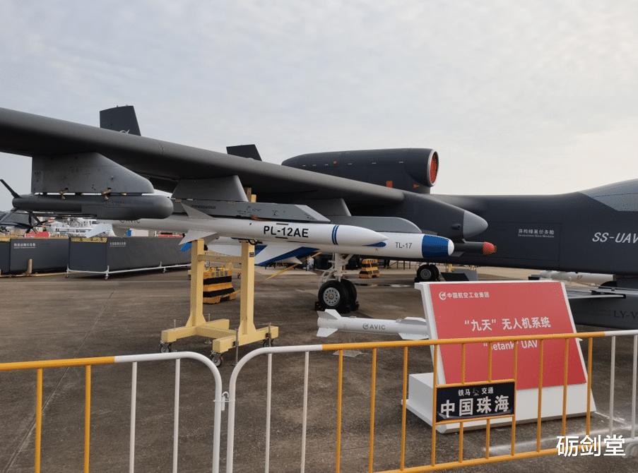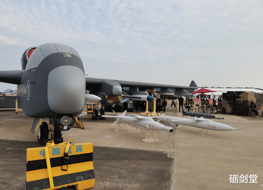 本届珠海航展,在露天展区最引人注目的,大概就是“九天”重型多用途无人机,该机翼展约25米,最大起飞重量16吨,有效载荷6吨,大概是本届航展上体积和起飞重量最大的一架无人机。由于该机有8 个外挂点以及1个模块化货仓以及6吨的有效载荷,因此可以携带包括500公斤的LS-6卫星制导滑翔炸弹、FT-12激光制导炸弹、TL-7反舰导弹等武器,还能携带1000公斤激光制导炸弹和LY-V501型滑翔式散布器。而且值得注意的是,该机还能携带包括PL-12和PL-15在内的空对空导弹,具备一定的远程拦截能力。