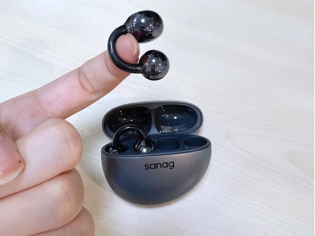 塞那 S7S 的耳夹式设计不错,还加入了轻云舒适科技 6.0。耳机内部用了升级款0.5mm 超弹性记忆柔丝,再搭配小云朵工程设计和人体工学球形腔体,贴合耳朵且稳固性好;重量上,耳机单耳只有4.2 克,很轻,戴久了也不会压耳朵。