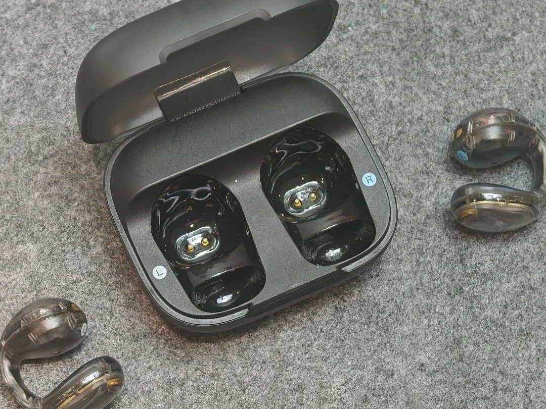 这款耳机的耳夹式设计可以让耳朵保持通透的感觉。耳机单耳约 6.3 克,戴在耳朵上感觉很轻,戴着很舒服。耳机的 “C 型” 内桥外部用了高品质 TPU 材质,摸起来柔软亲肤;再加上12° 黄金夹角设计,既能牢牢贴合耳部,还能带来不错的佩戴体验。