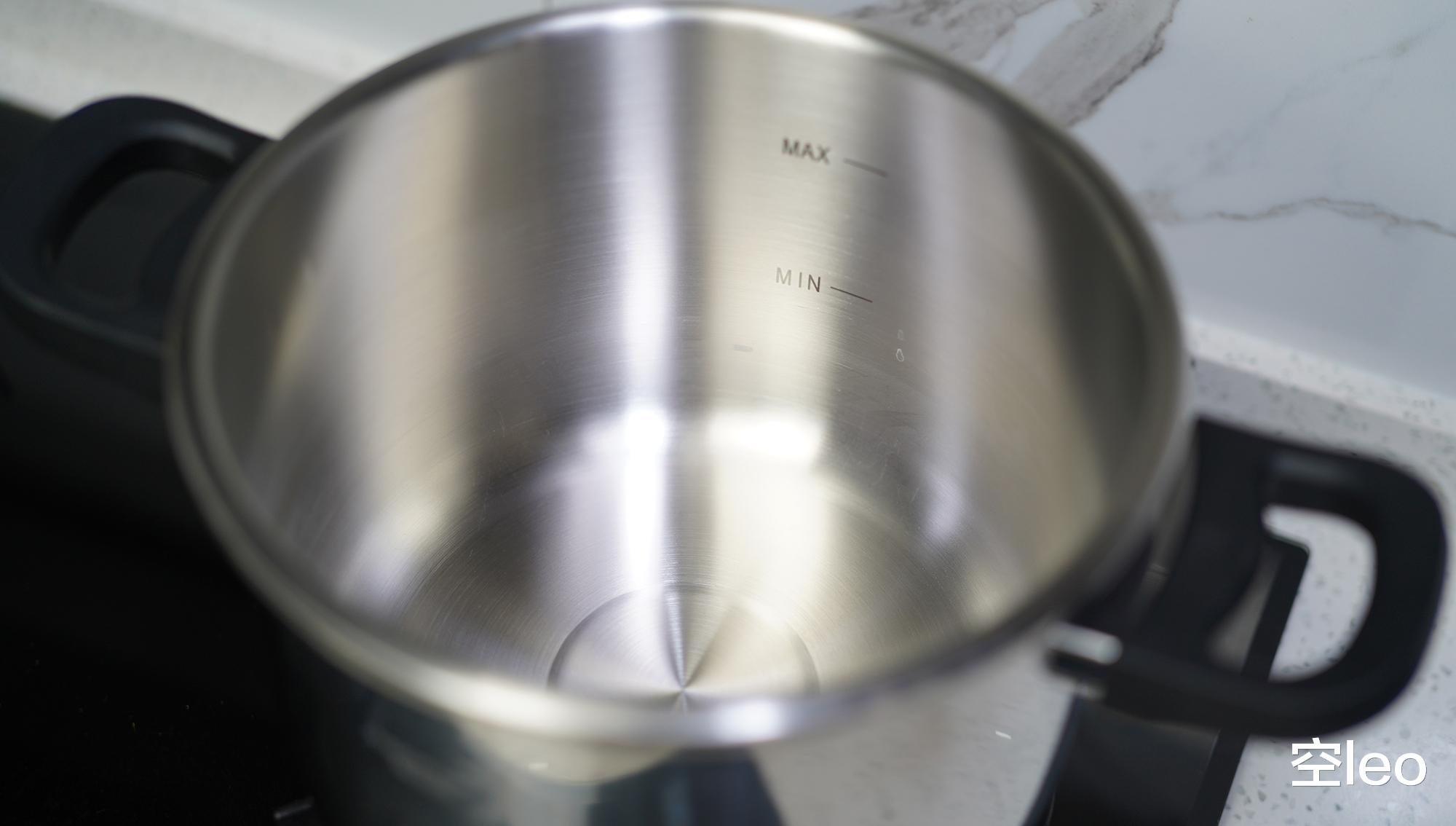 初次上手,最直观的感受是其沉甸甸的分量感。官方数据显示其重量达到3.5公斤,这份重量并非虚有其表,而是来源于其扎实的用料。锅具内胆采用精选304加厚食品级不锈钢一体成型打造。这种材质是高端厨具的标配,不仅坚固耐用,具有极佳的耐腐蚀和抗锈蚀能力。
