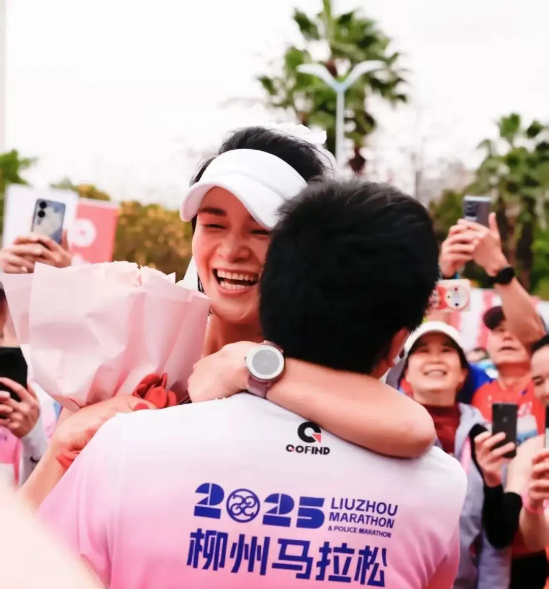 围观跑友纷纷举起手机记录这一甜蜜时刻,欢呼声、掌声此起彼伏,连赛事直播主持人都忍不住惊叹:“这一幕没有写进剧本,这是突如其来的浪漫!柳州马拉松不仅是速度与激情的舞台,同样是充满爱的海洋。”