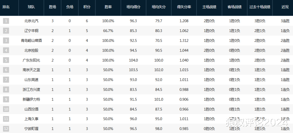 CBA最新排名:北京3连胜冲上第1 广东领衔5队全胜 上海爆冷输球